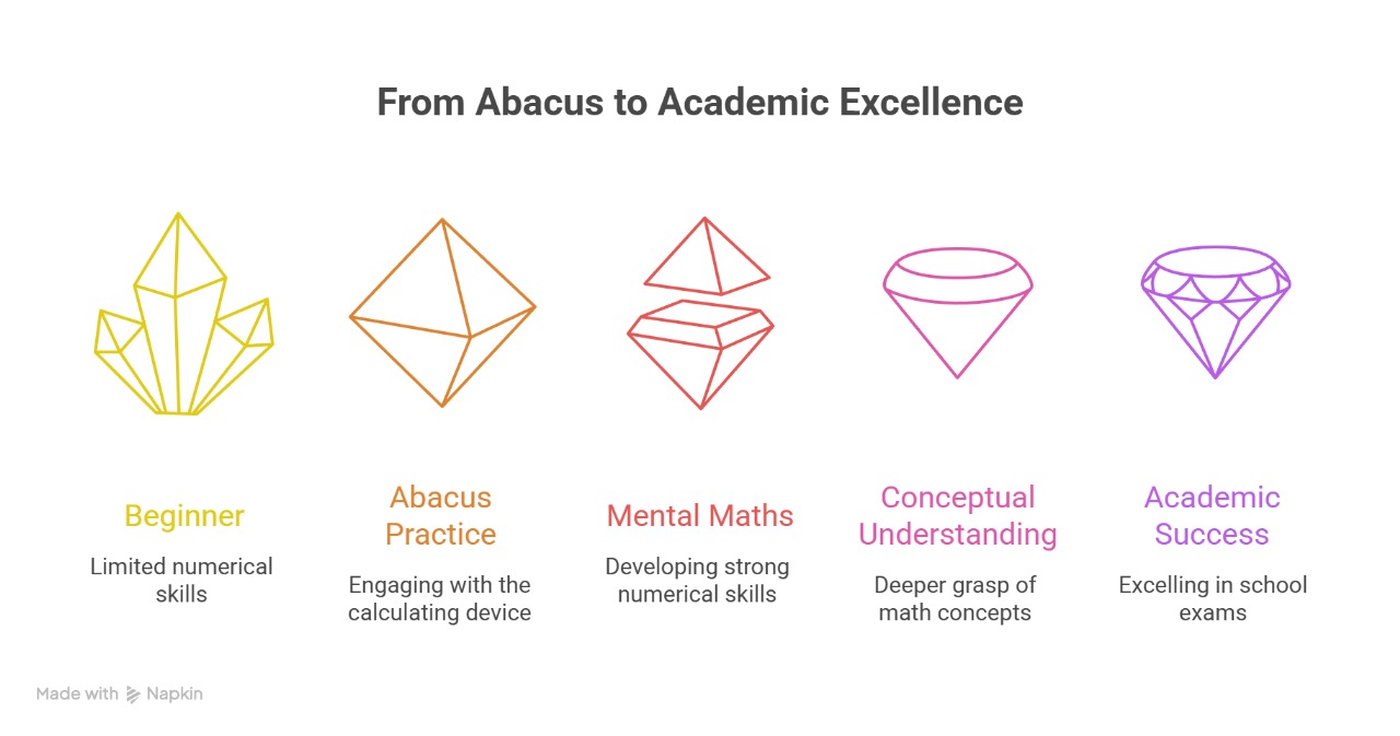 Consistent abacus practice strengthens three central pillars of academic success, which are a child’s concentration, memory, and confidence. Parents often observe a notable increase not just in the child’s math skills, but in their entire school performance.